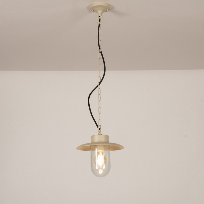 Landelijke hanglamp voor buiten, in het beige