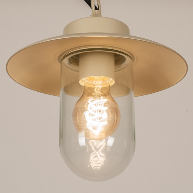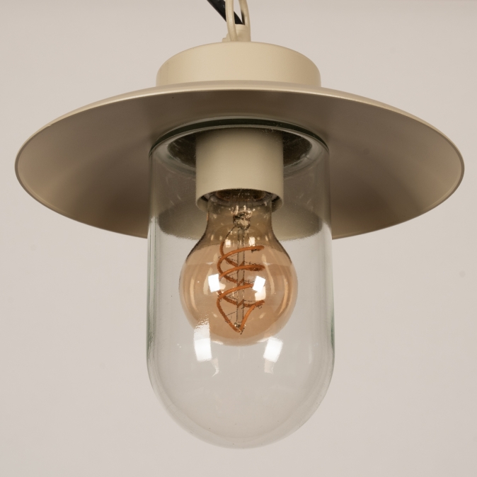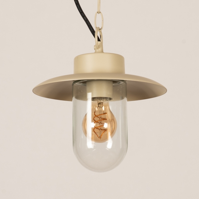 Deze boerderij buitenlamp verfraait elke overkapping. Daar hoef je niet voor in een boerderij te wonen. Het model van deze buitenlantaarn wordt ook wel visserslamp genoemd en wordt gekenmerkt door de wijde en platte kap met daaronder een stolp van helder glas. De lichtopbrengst is hierdoor optimaal en je kunt de lamp extra sfeervol maken door te kiezen voor een mooie led filament lamp.Voordelen boerderij hanglamp in beige
