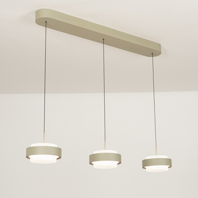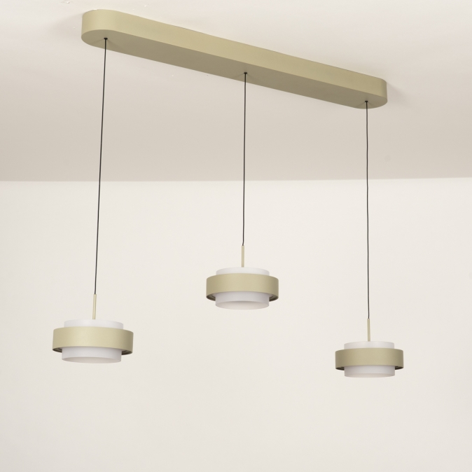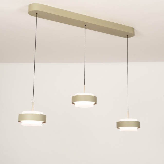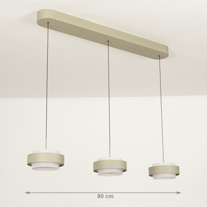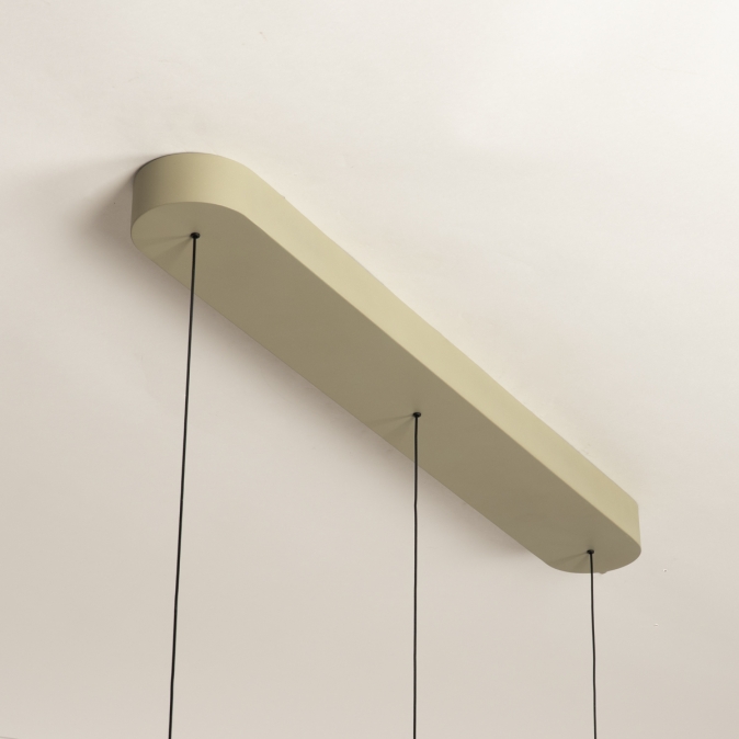 Deze 3-lichts hanglamp heeft een langwerpige plafondplaat van 90 cm en levert in totaal 3150 lumen. Dankzij de Dim to Warm-techniek wordt het licht warmer als je dimt: van 3000 naar 2200 Kelvin. Als de kappen omhoog staan, werkt de lamp ook als plafondlamp. Met slechts 18 Watt verbruik per kap is deze lamp energiezuinig én stijlvol. De lamp is uitgevoerd in olijfgroen gespoten metaal en is dimbaar met een LED-dimmer (niet inbegrepen), zodat je altijd de juiste sfeer kunt creëren.Lichtwaarden