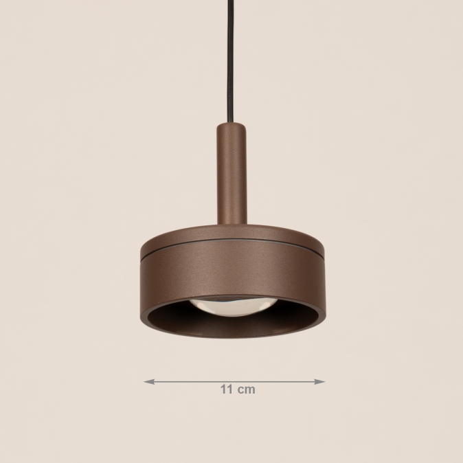 Breng warme sfeer in je huis, badkamer, tuin, overkapping of terras met deze modern, bruine hanglamp. Deze stijlvolle hanglamp in roestbruin aluminium combineert elegantie met functionaliteit. Deze hanglamp is door zijn IP54 afwerking ook bijzonder goed geschikt voor gebruik buitenshuis. De geïntegreerde LED-lichtbron (8W) verspreidt een aangenaam warm wit licht (2700K) en is bestand tegen regen en stof dankzij IP54. De pendellamp voor binnen- of buitengebruik is in hoogte verstelbaar vóór installatie (tot 166,5 cm) en eenvoudig aan te sluiten op een wandschakelaar. Met een diameter van 11 cm zorgt deze hanglamp voor een subtiele maar krachtige lichtbeleving.Voordelen bruine binnen of buitenlamp