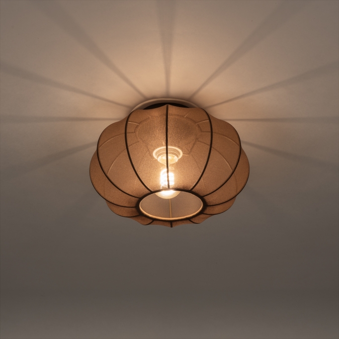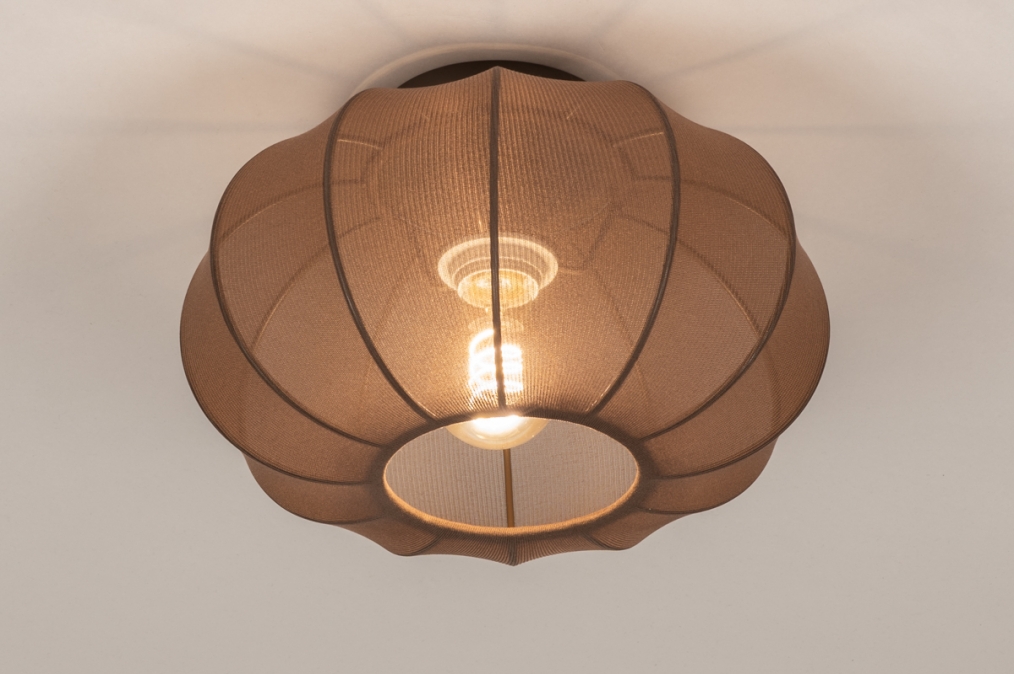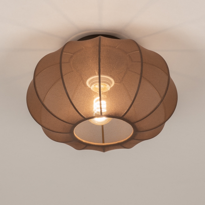 Kleine plafondlamp van bruine stof