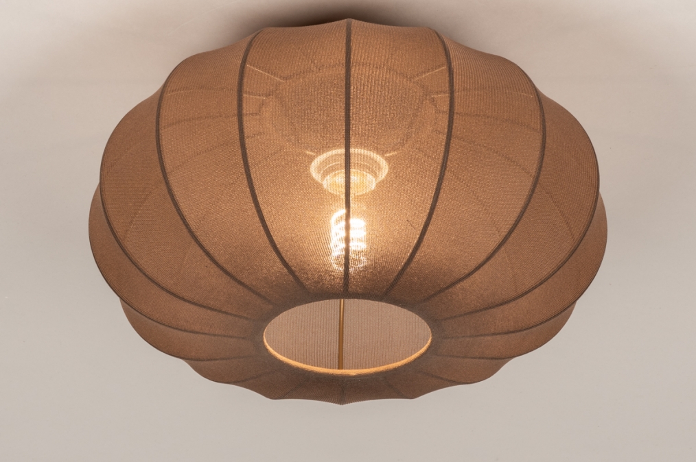 Gegarandeerd sfeer! Deze bruine lampion lamp zorgt voor fijn en zacht licht. Ideaal voor in de slaapkamer, kinderkamer of babykamer. De grote plafondlamp is gemaakt van een mooie bruine stof die transparant is en een streep-structuur heeft. De tulband vorm, de lampion belijning en de mooie stof maken deze lamp lieflijk, zacht en rustiek.Voordelen lampion plafondlamp van stof