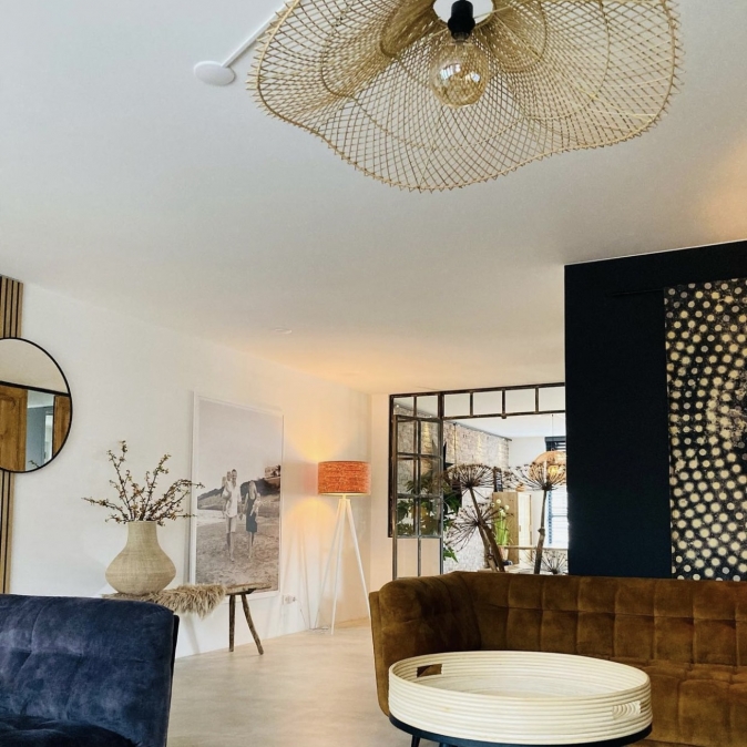 Wat een plaatje! Deze rotan plafondlamp is groot, speels en uniek. De organische vorm van de rieten kap past perfect bij het natuurlijke materiaal. De hanglamp heeft een doorsnede van maar liefst 85 cm. Natuurlijke materialen zoals rotan voegen warmte toe aan elke woonstijl. We zien rotan daarom terug in veel verschillende woonstijlen, zoals Scandinavisch,Ibiza,Japandi en de bohemian stijl. Deze grote hanglamp van riet zorgt voor een serene look en past daarom perfect in een rustieke slaapkamer, of voeg warmte toe aan de zithoek door deze hanglamp bij de bank te plaatsen. Door de ronde vorm is deze lamp ook geweldig boven een ronde eettafel!