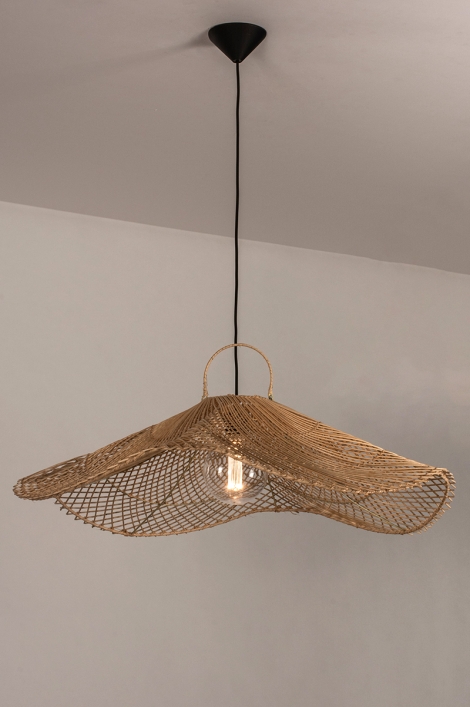 • hanglamp 31218 landelijk modern metaal riet bruin naturel rond