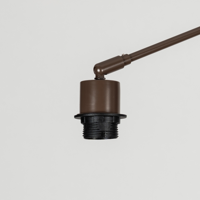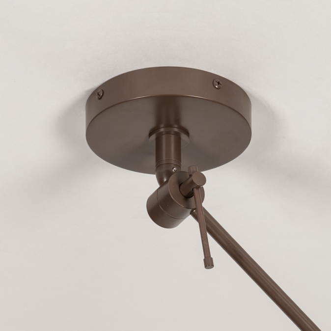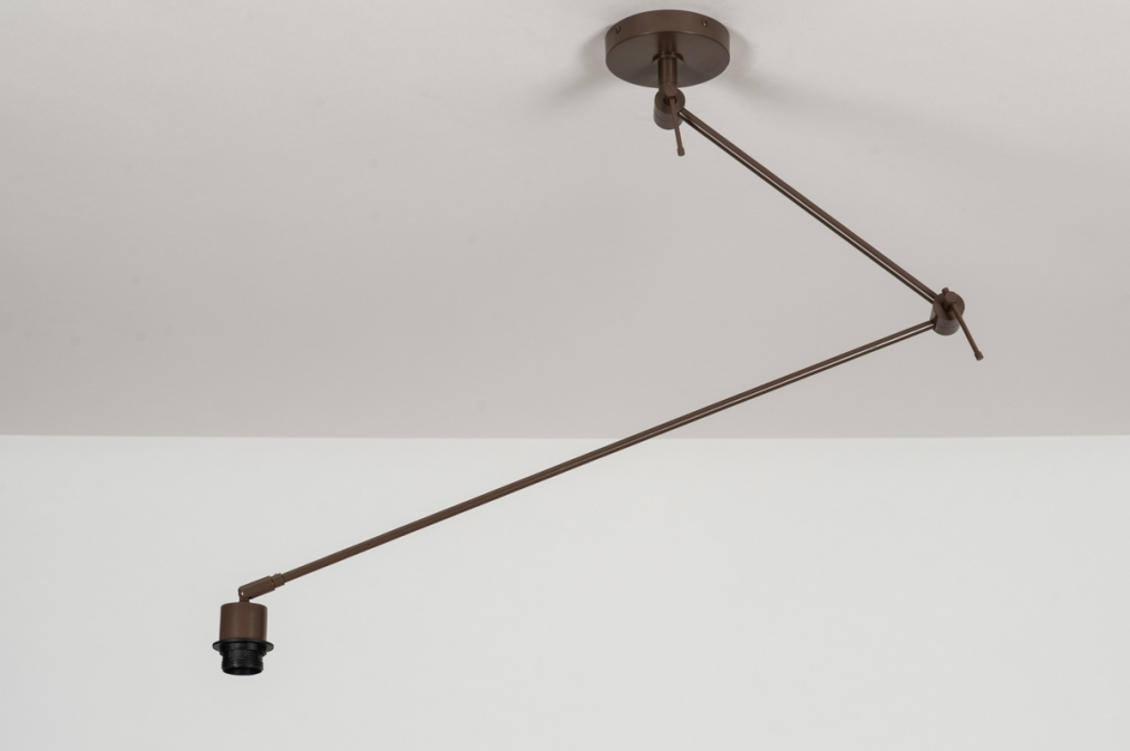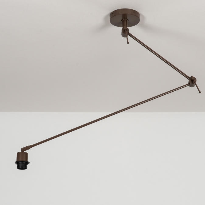 Deze verstelbare plafondlamp/hanglamp in het bruin bestaat uit meerdere delen. Hierdoor is de moderne hanglamp draaibaar en verstelbaar. Dé oplossing als het lichtpunt op de verkeerde plek zit. Deze losse pendel wordt geleverd zonder kap. De pendel is geschikt voor alle stoffen kappen met een diameter van max. 45cm en voorzien van een E27 bevestiging.Voordelen verstelbare hanglamp
