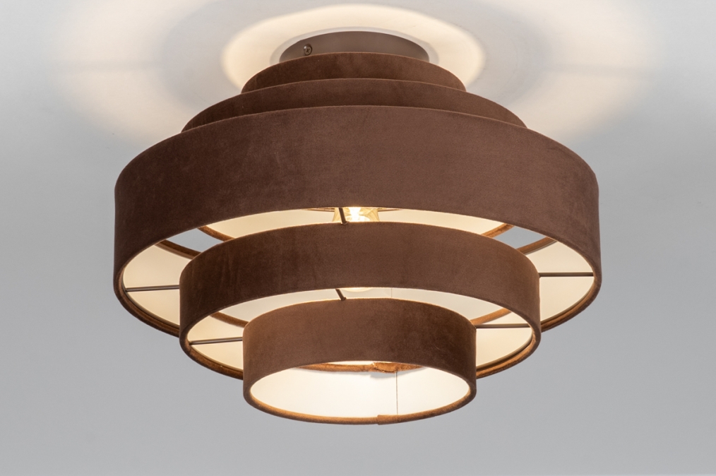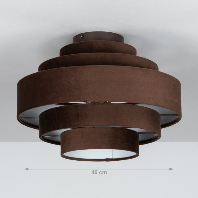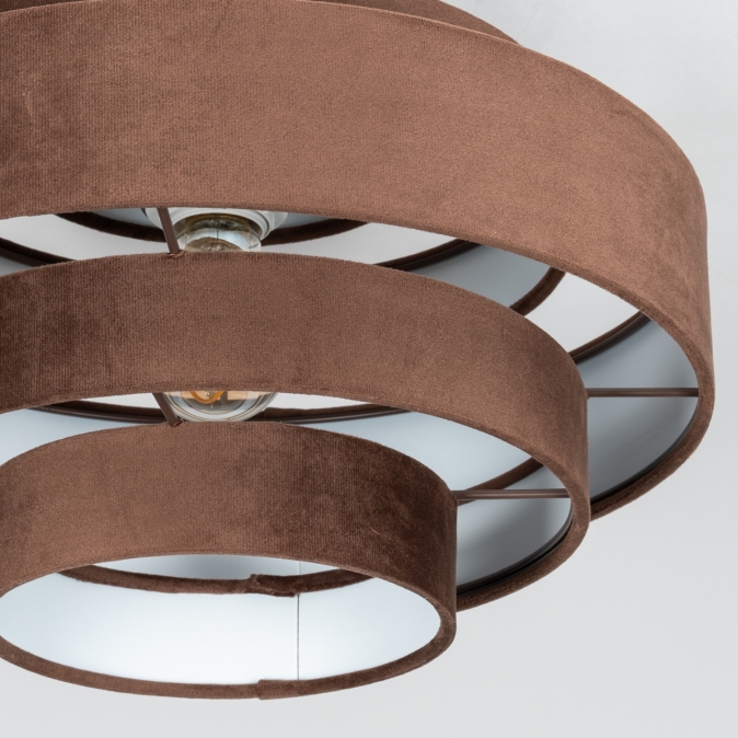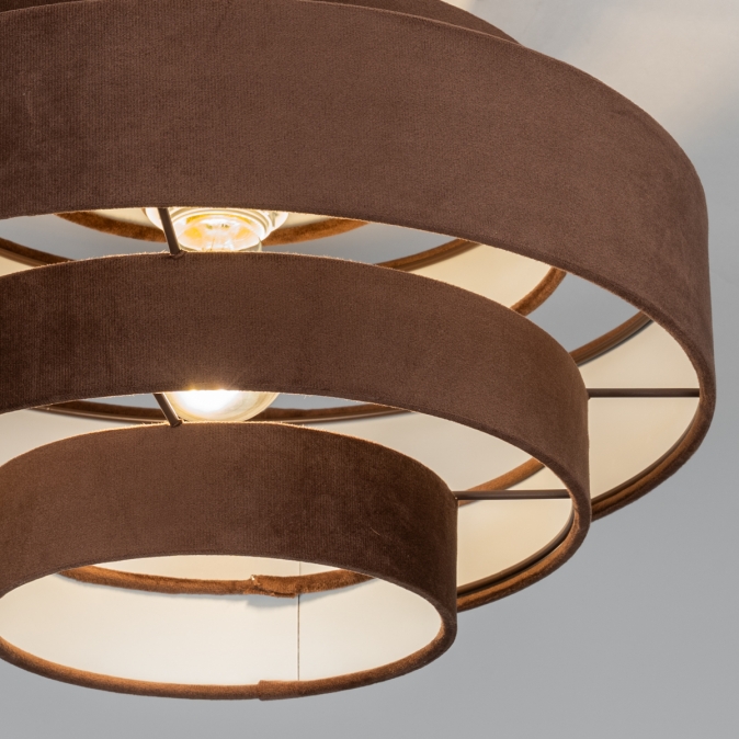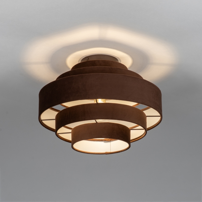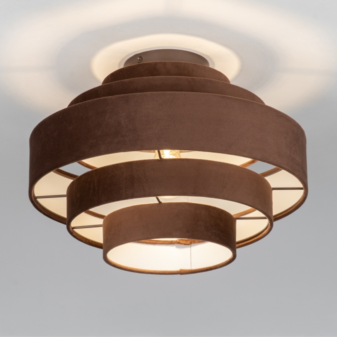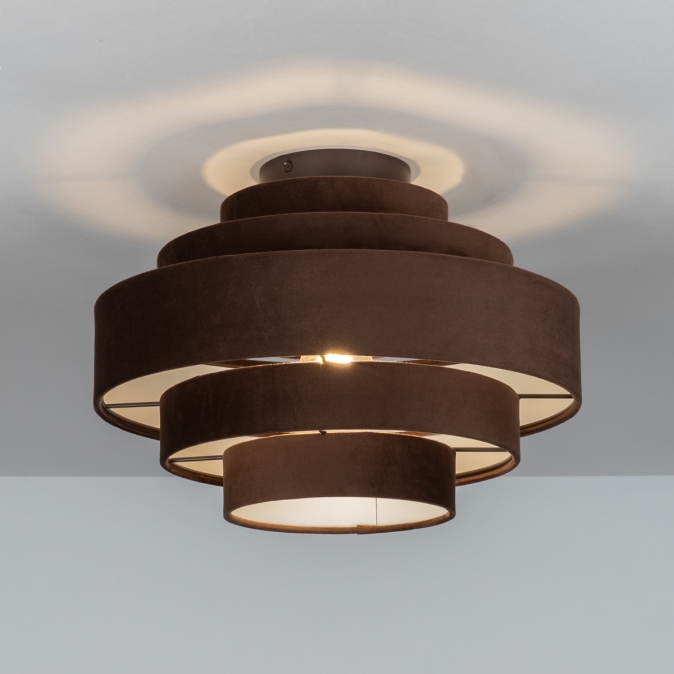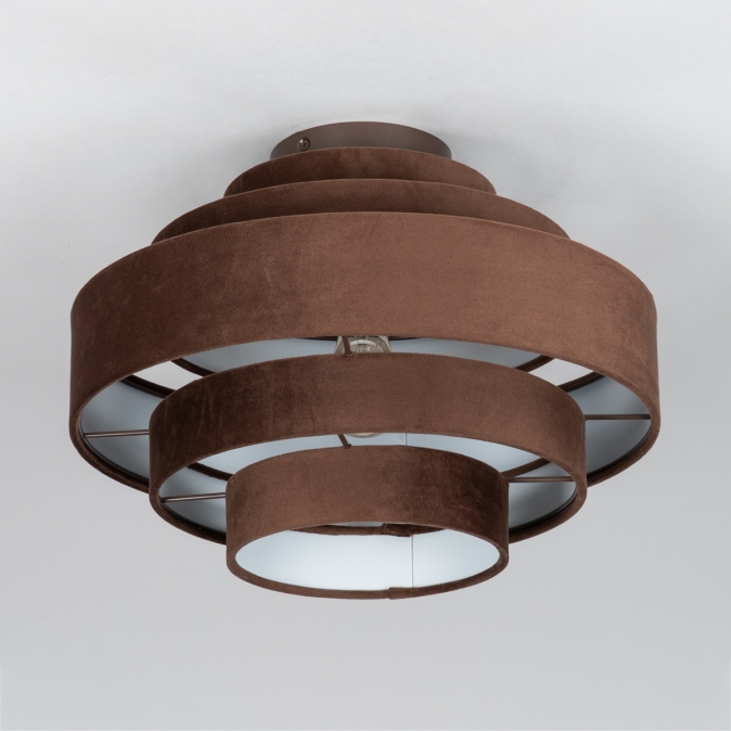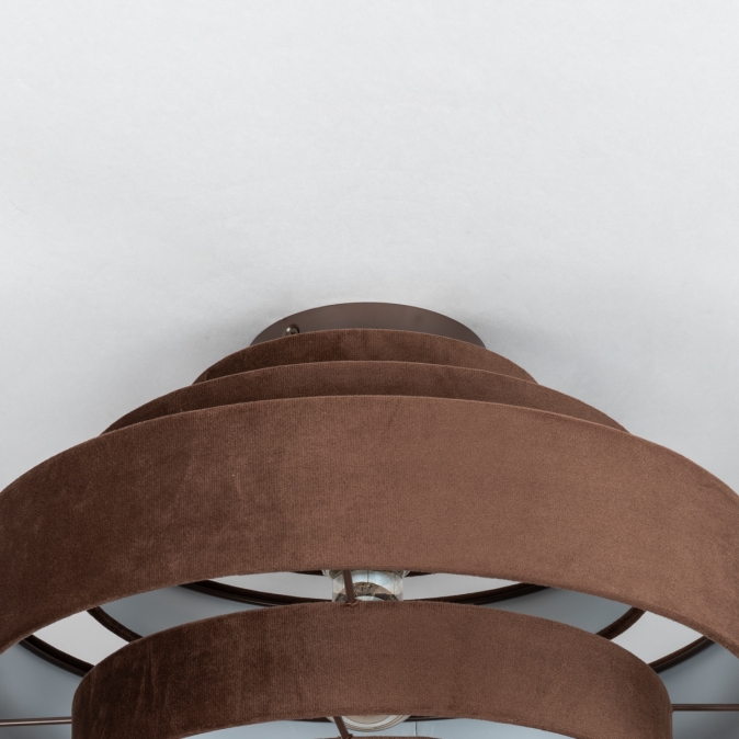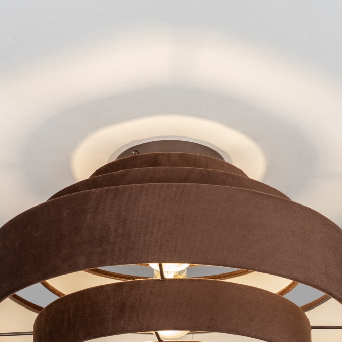 Plafondlamp in zachte, velvet stof, uitgevoerd in een chocolade bruine kleur