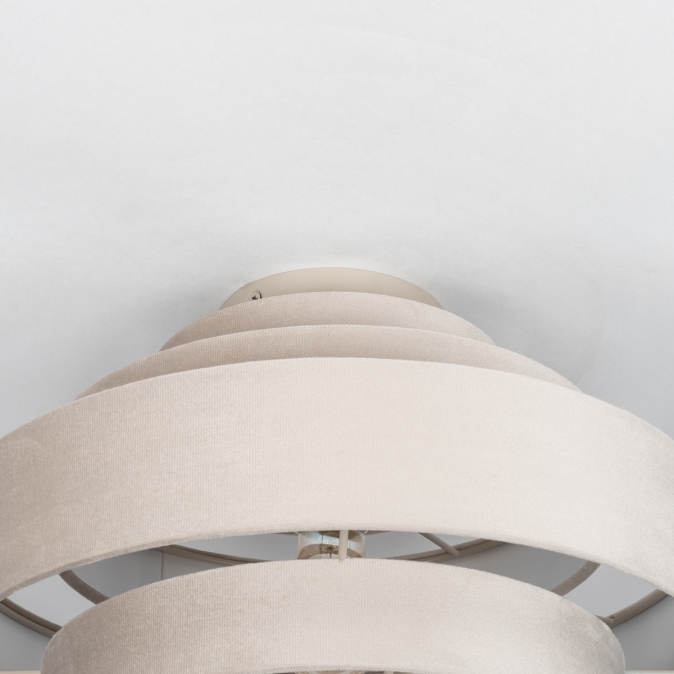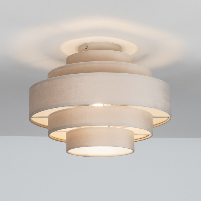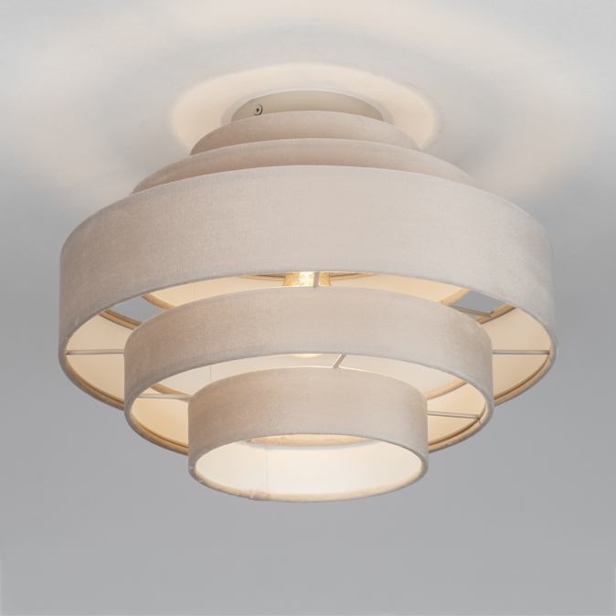 Plafondlamp in zachte, velvet stof, uitgevoerd in een taupe kleur
