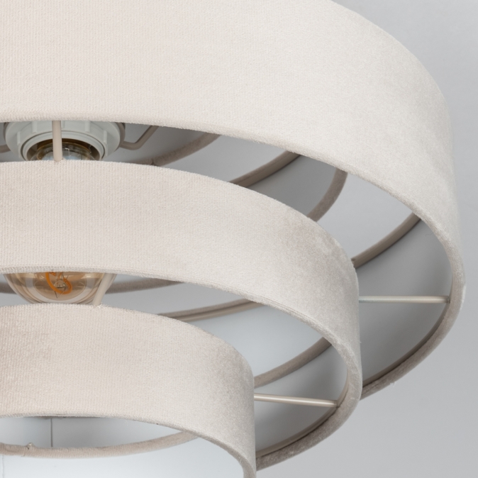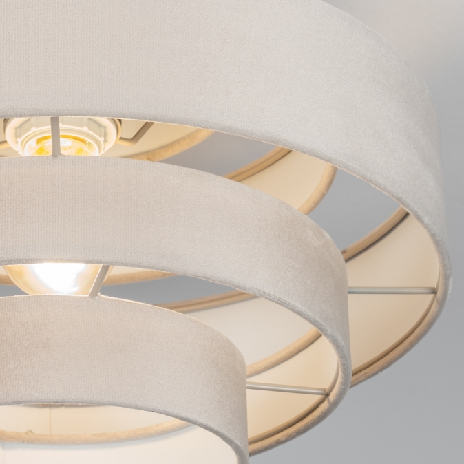 Breng zachtheid en elegantie in uw interieur met deze prachtige plafondlamp, uitgevoerd in luxe, velvet stof. Het zachte materiaal geeft de lamp een warme uitstraling, perfect om uw woonkamer, slaapkamer of hal te verfraaien. De lamp heeft een uniek design met ringen in verschillende formaten, waarbij subtiele ruimtes tussen de ringen zorgen voor een mooi spel van licht op het plafond. De binnenzijde is wit zodat het licht optimaal gereflecteerd wordt. Het resultaat? Een sfeervolle, zachte verlichting die perfect is voor elke kamer.Voordelen plafondlamp in velvet stof