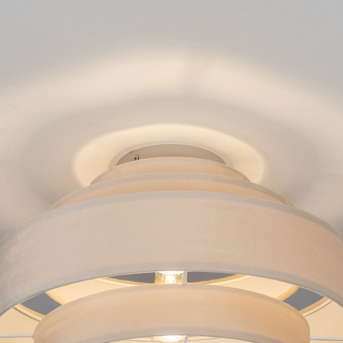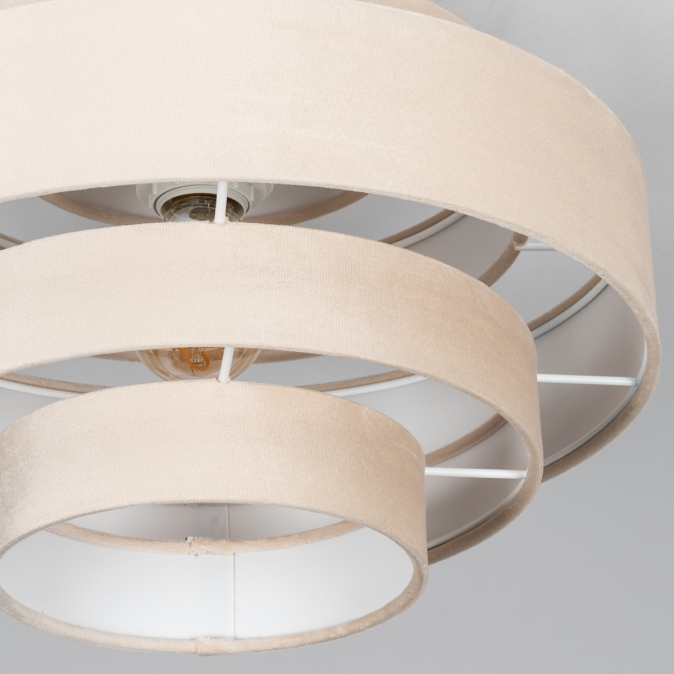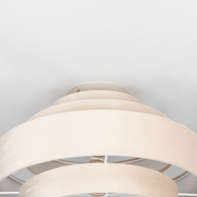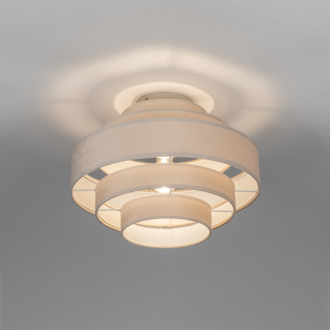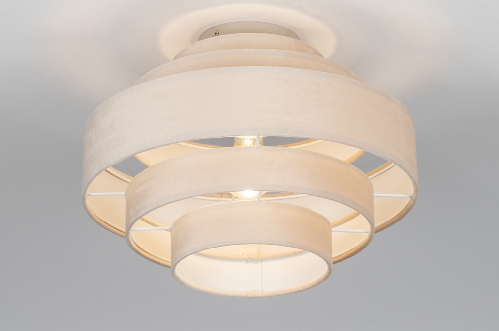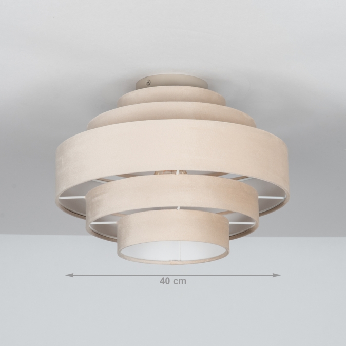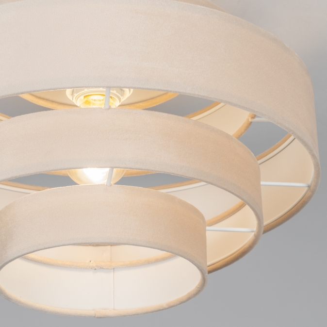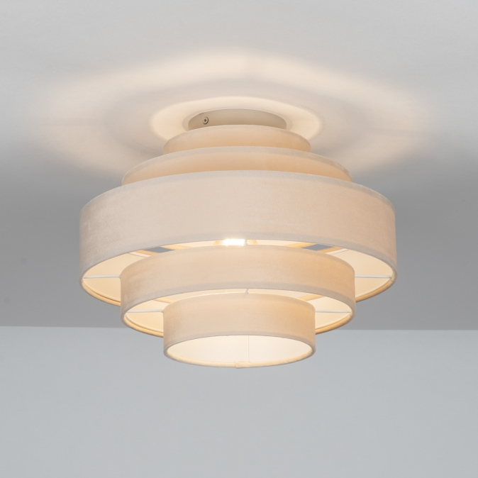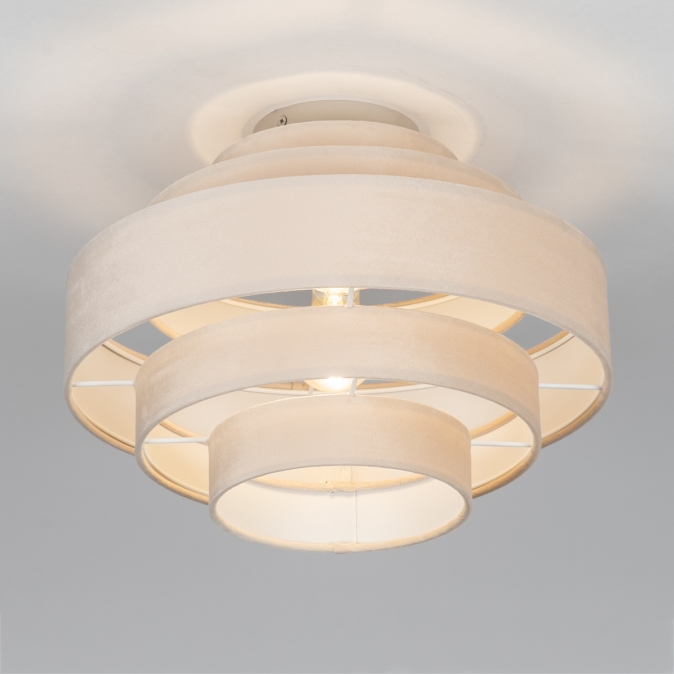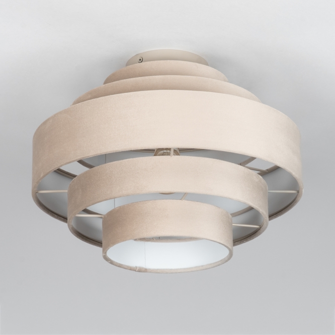 Plafondlamp in zachte, velvet stof, uitgevoerd in een beige kleur