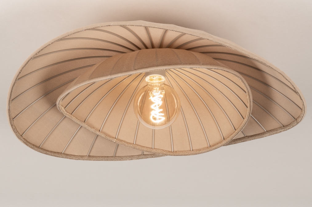 - • De stof van deze lamp heeft een warme taupe kleur met een subtiele textuur