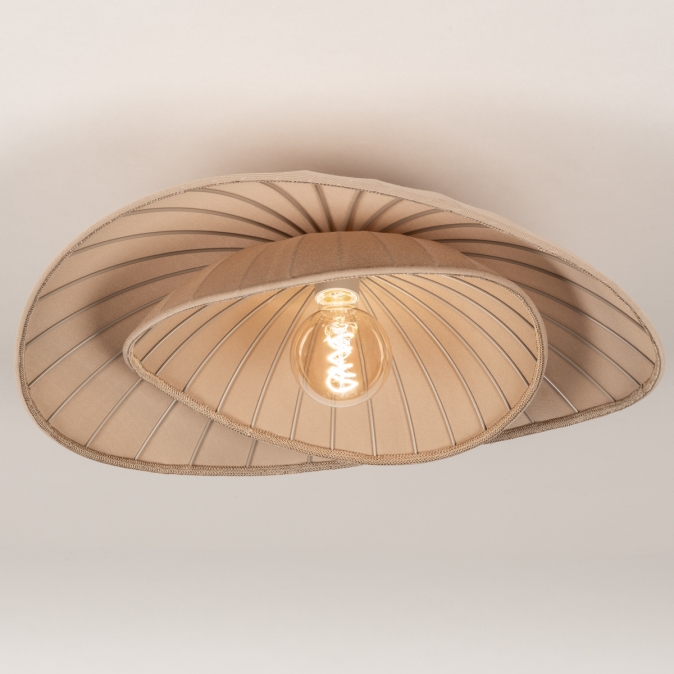 Breng gegarandeerd sfeer in je interieur! Deze Japandi plafondlamp trekt de aandacht door zijn unieke organische vorm en subtiele afwerking. Met een prachtige taupekleurige stof aan de bovenzijde en een sierlijk randje, voegt deze lamp een warm en natuurlijk accent toe aan je ruimte.Voordelen taupe plafondlamp in Japandi stijl