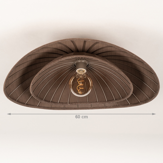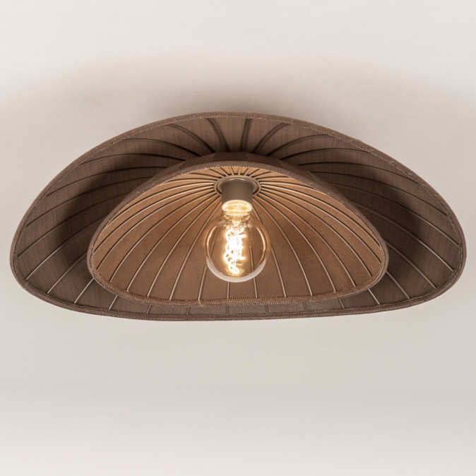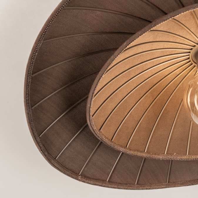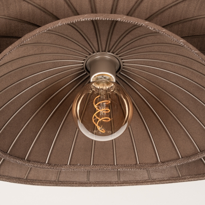 - • De stof van deze lamp heeft een warme bruine kleur met een subtiele textuur