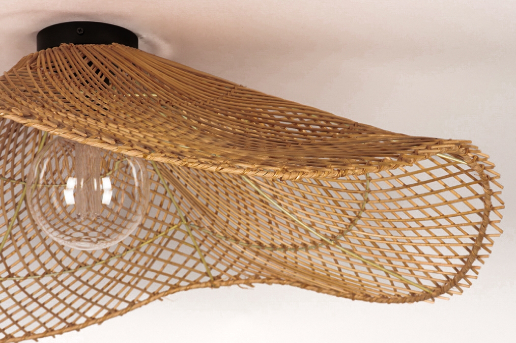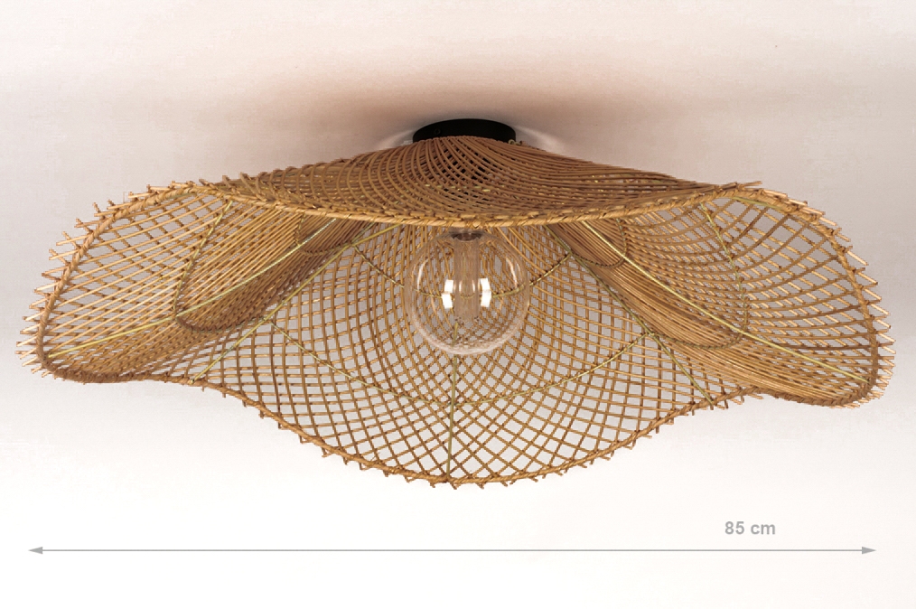 Rotan, ook wel riet genoemd, is een natuurlijk materiaal dat goed te combineren is met stoere materiaalsoorten zoals beton en leer. Door deze combinaties ontstaat een warme sfeer. In deze rotan lamp past een led lamp met E27 fitting. Voor sfeervolle verlichting adviseren wij een led filament lamp te gebruiken. Deze rieten plafondlamp wordt compleet geleverd met een plafondplaat en fitting.Afmetingen