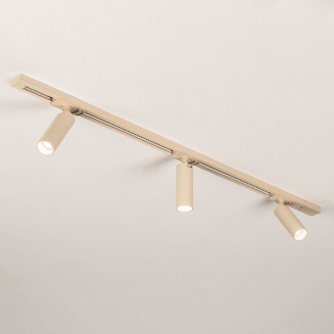 Luxe railverlichting in het beige voorzien van drie strakke mini GU10 spots!