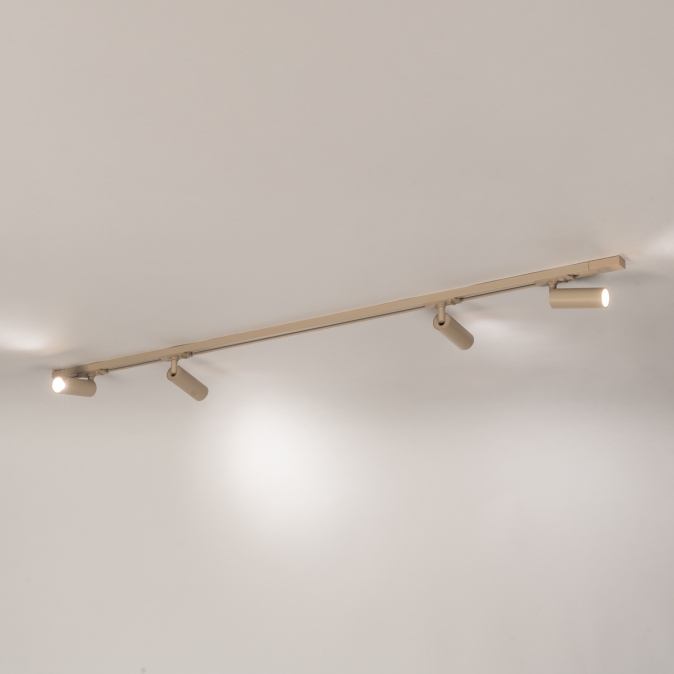 Luxe railverlichting in het beige voorzien van vier strakke mini GU10 spots!