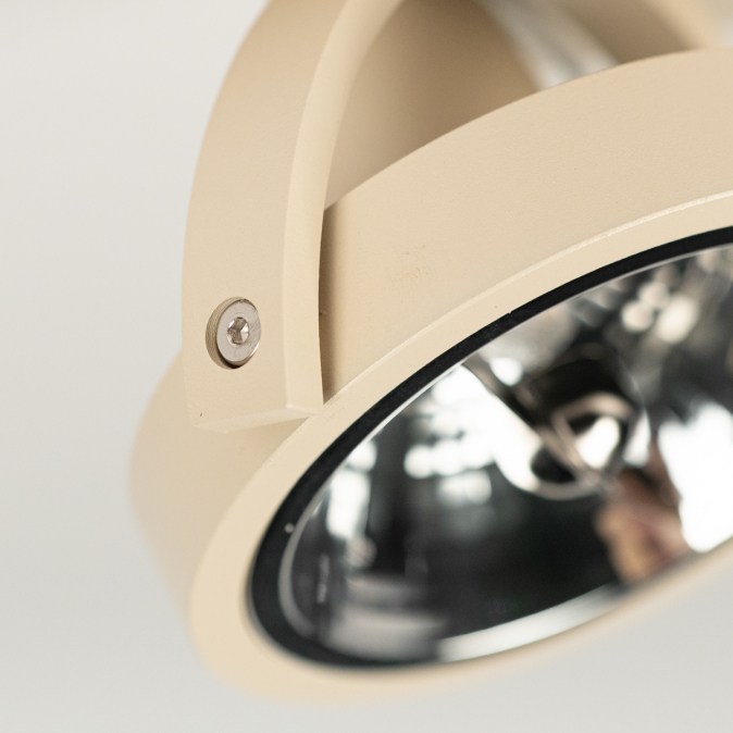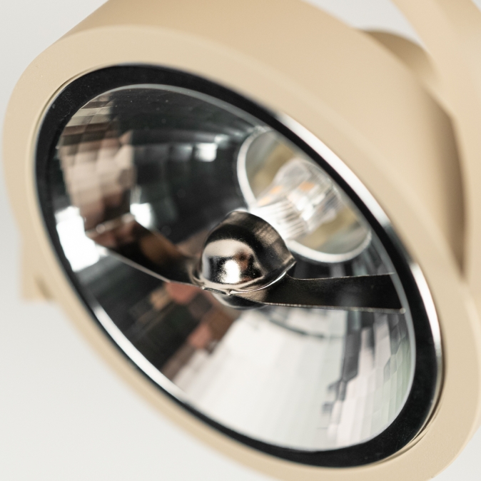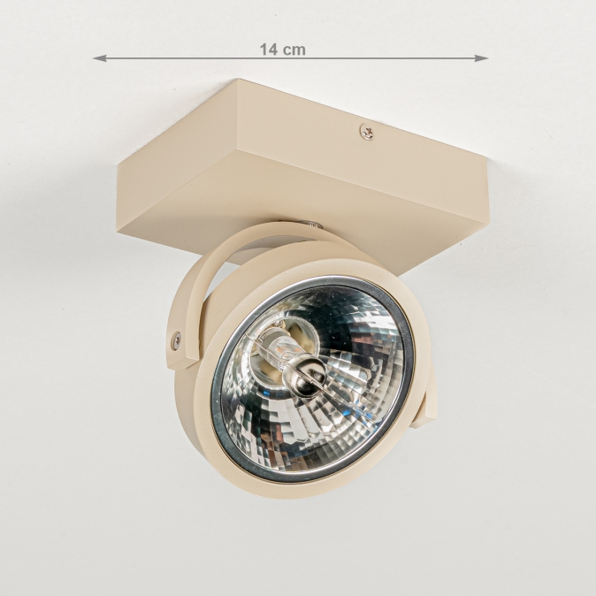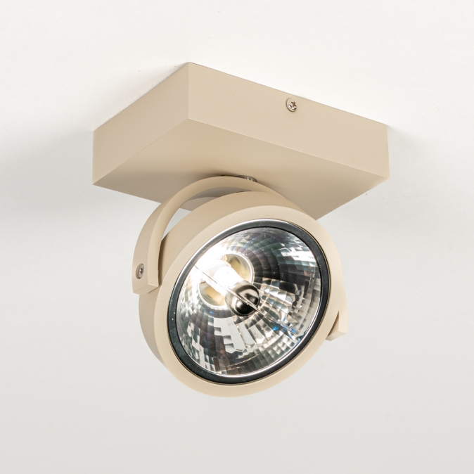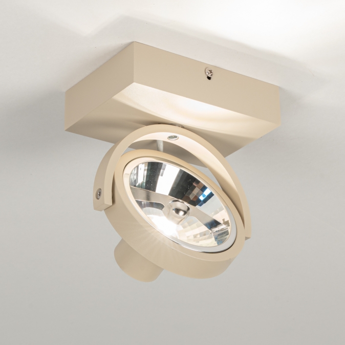 Laat uw (t)huis stralen met het licht van deze zandkleurige spot. Opvallend mooi licht, dat is waarmee deze spot uitblinkt. Het licht van de led lamp (exclusief) wordt gereflecteerd door de grote reflector. De reflector is niet alleen prachtig om te zien en een ware toevoeging aan het design van de spot, de reflector is ook functioneel. Het licht wordt weerkaatst waardoor een geconcentreerde 36 graden lichtbundel ontstaat: Opvallend mooi licht! De afwerking van de spot is robuust en degelijk. De spot is draai- en kantelbaar, zodat het mooie licht precies daar komt waar u het wilt hebben.Voordelen industriële opbouwspot met reflector