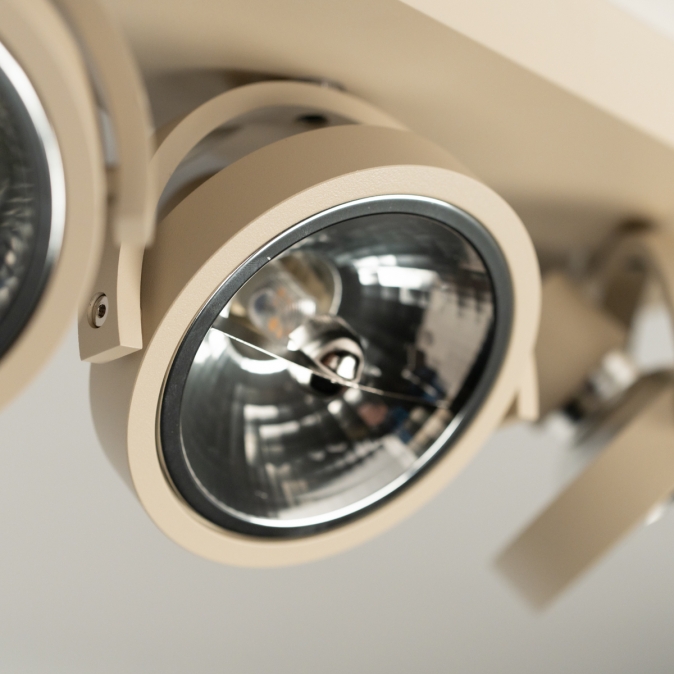Laat uw (t)huis stralen met het licht van deze beige spots. Opvallend mooi licht, dat is waarmee deze spot uitblinkt. Het licht van de led lamp (exclusief) wordt gereflecteerd door de grote reflectoren. De reflectoren zijn niet alleen prachtig om te zien en een ware toevoeging aan het design van de spot, de reflector is ook heel functioneel. Het licht wordt weerkaatst waardoor een geconcentreerde 36 graden lichtbundel ontstaat: Opvallend mooi licht! De afwerking van de spot is robuust en degelijk. De spot is draai- en kantelbaar, zodat het mooie licht precies daar komt waar u het wilt hebben.Voordelen industriële opbouwspots met reflectoren