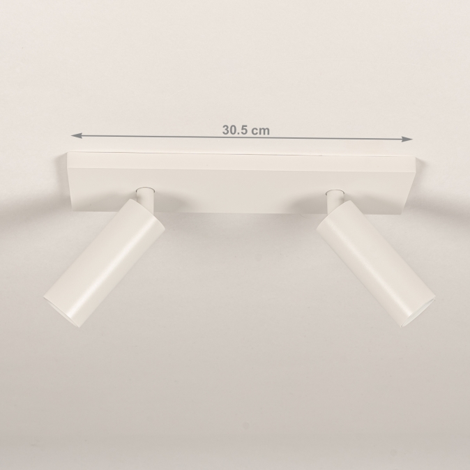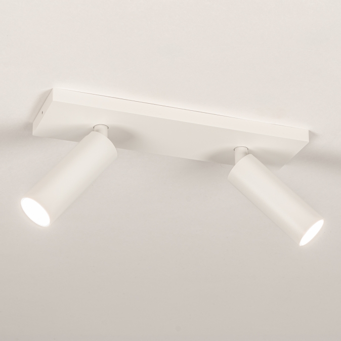 Deze dubbele opbouwspot straalt elegantie uit dankzij de langwerpige plafondplaat en slanke lichtkokers. De matte, witte afwerking zorgt voor een moderne, tijdloze uitstraling die moeiteloos past in elk interieur. Dankzij de draaibare en kantelbare kokers richt je het licht precies daar waar nodig. De iets verzonken mini GU10 lichtbronnen zorgen voor rustige, niet-verblindende lichtbundels. Perfect voor zowel functionele als sfeervolle verlichting!Voordelen dubbele opbouwspot in mat wit