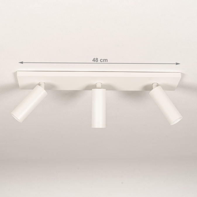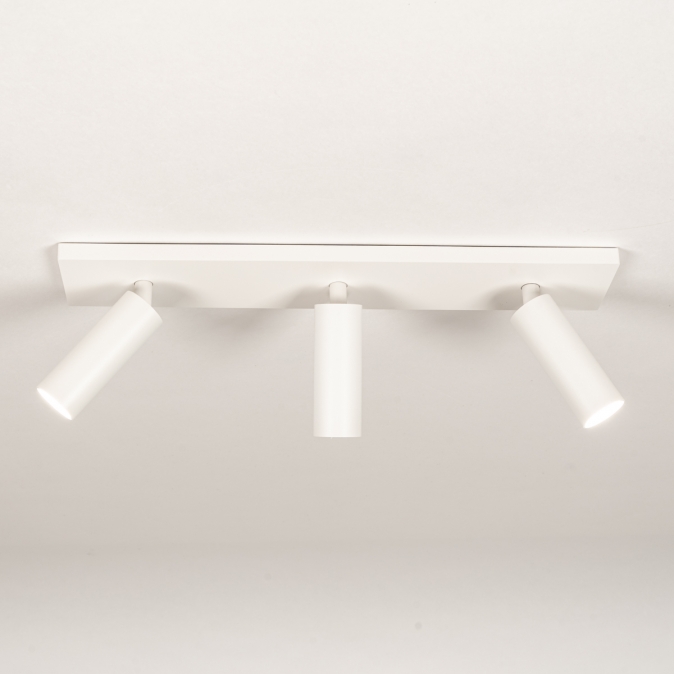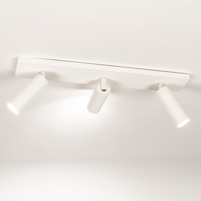 Deze driedubbele opbouwspot straalt elegantie uit dankzij de langwerpige plafondplaat en slanke lichtkokers. De matte, witte afwerking zorgt voor een moderne, tijdloze uitstraling die moeiteloos past in elk interieur. Dankzij de draaibare en kantelbare kokers richt je het licht precies daar waar nodig. De iets verzonken mini GU10 lichtbronnen zorgen voor rustige, niet-verblindende lichtbundels. Perfect voor zowel functionele als sfeervolle verlichting!Voordelen driedubbele opbouwspot in mat wit