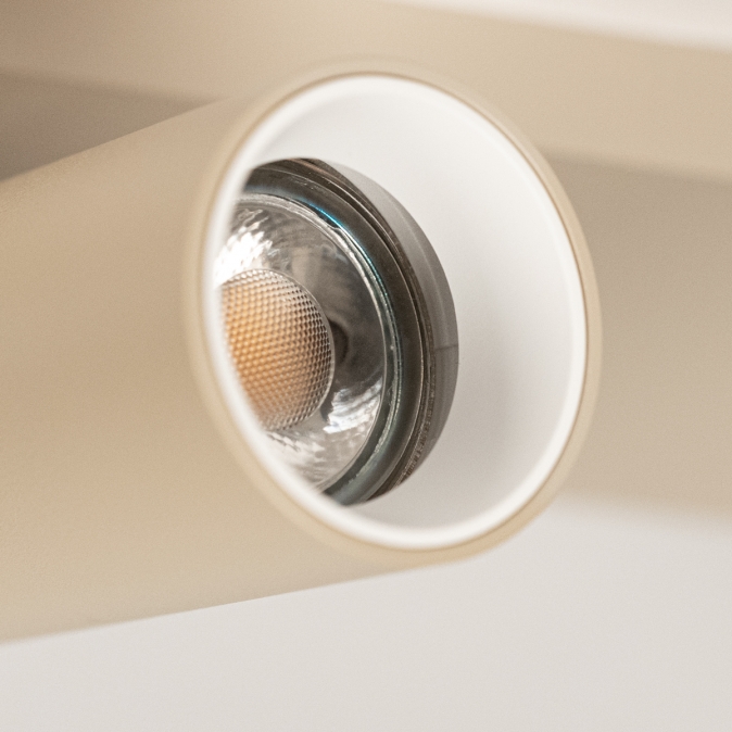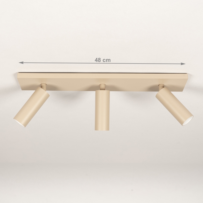 Deze driedubbele opbouwspot straalt elegantie uit dankzij de langwerpige plafondplaat en slanke lichtkokers. De matte, beige afwerking zorgt voor een moderne, tijdloze uitstraling die moeiteloos past in elk interieur. Dankzij de draaibare en kantelbare kokers richt je het licht precies daar waar nodig. De iets verzonken mini GU10 lichtbronnen zorgen voor rustige, niet-verblindende lichtbundels. Perfect voor zowel functionele als sfeervolle verlichting!Voordelen driedubbele opbouwspot in mat beige