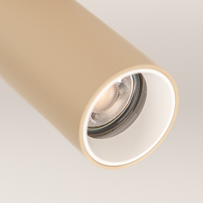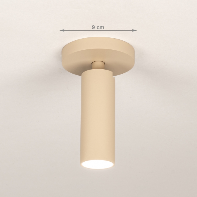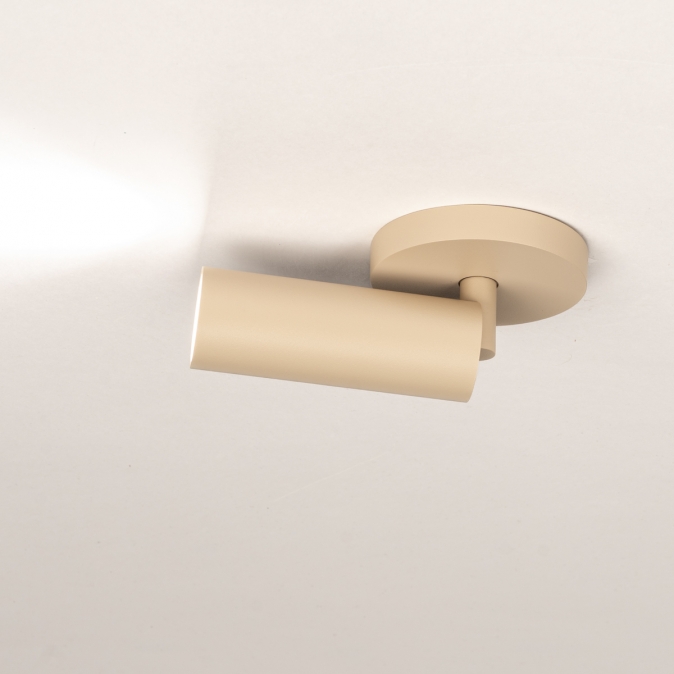 Deze opbouwspot straalt elegantie uit dankzij de ronde plafondplaat en slanke lichtkoker. De matte, beige afwerking zorgt voor een moderne, tijdloze uitstraling die moeiteloos past in elk interieur. Dankzij de draaibare en kantelbare koker richt je het licht precies daar waar nodig. De iets verzonken mini GU10 lichtbron zorgt voor een rustige, niet-verblindende lichtbundel. Perfect voor zowel functionele als sfeervolle verlichting!Voordelen enkele opbouwspot in mat beige
