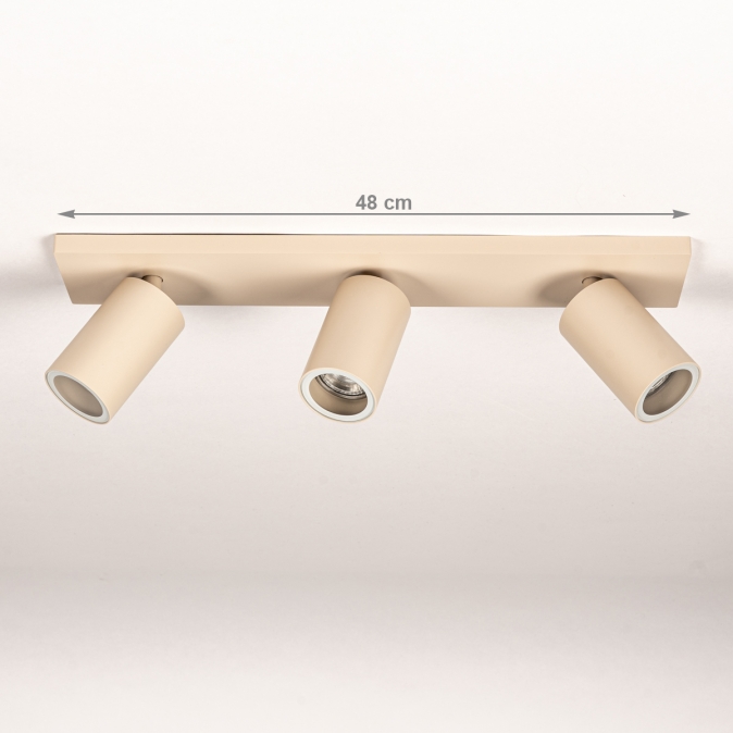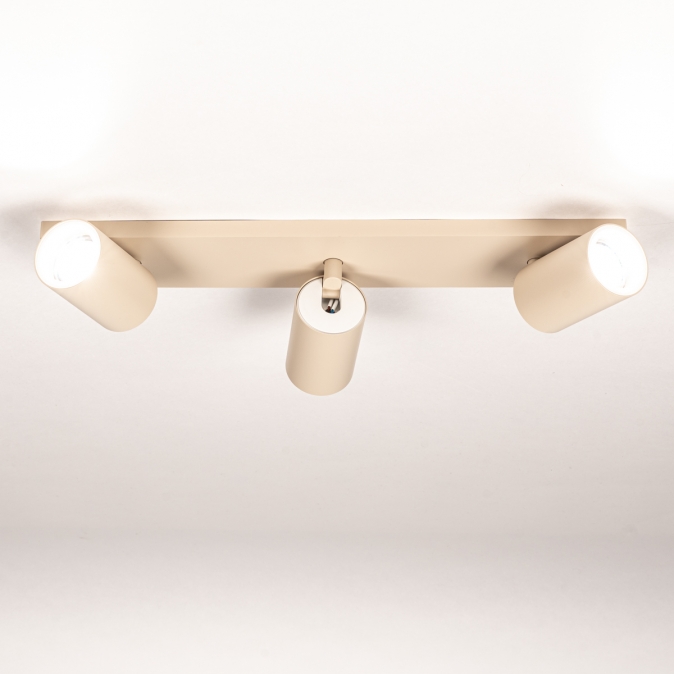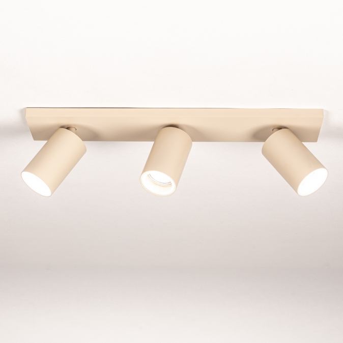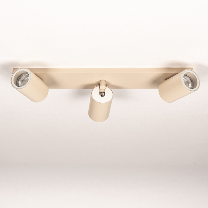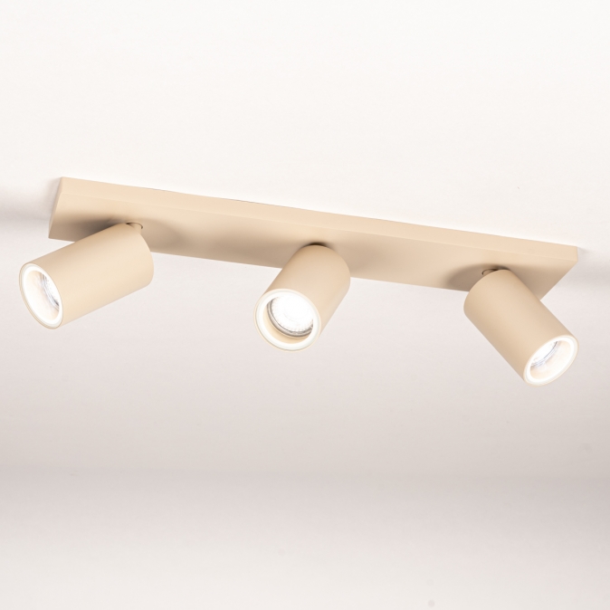 Deze driedubbele opbouwspot valt op door zijn stoere en degelijke uitstraling. De langwerpige plafondplaat is voorzien van drie richtbare spots. De matte, beige afwerking zorgt voor een moderne, tijdloze uitstraling die moeiteloos past in elk interieur. Dankzij de draaibare en kantelbare spots richt je het licht precies daar waar nodig. Deze spots hebben een IP44 waarde en zijn daardoor ook geschikt voor gebruik in de badkamer (zone twee). De iets verzonken GU10 lichtbronnen zorgen voor rustige, niet-verblindende lichtbundels. Perfect voor zowel functionele als sfeervolle verlichting!Voordelen driedubbele opbouwspot in mat beige