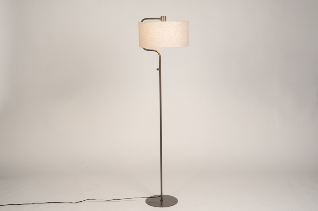 • staande lamp 31683 modern eigentijds klassiek stof metaal bruin beige zand rond ovaal