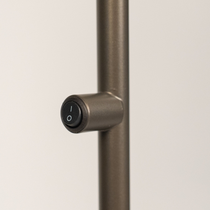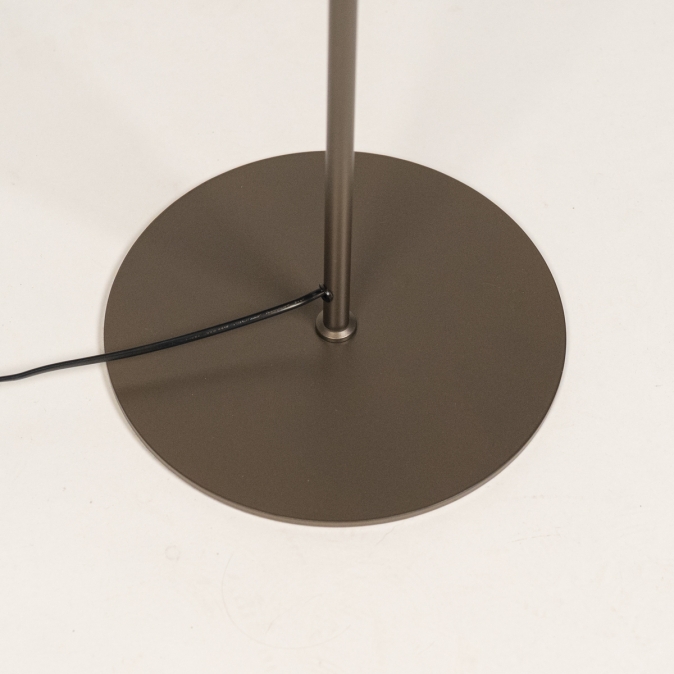 Dit bruine, metalen frame heeft een minimalistische vormgeving en valt op door de fraaie buiging aan de bovenzijde. Hierin valt een gedeelte van de kap in het bruine frame waardoor een uniek design benadrukt wordt.