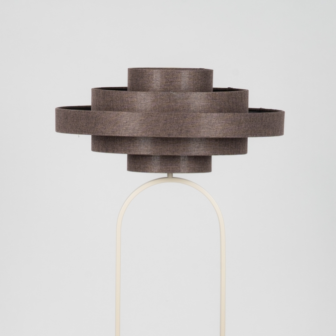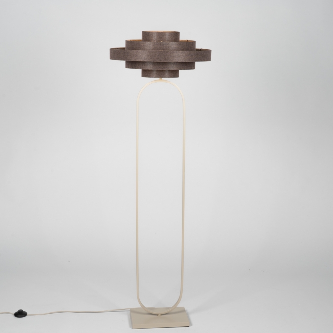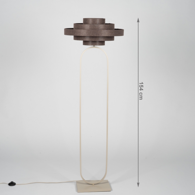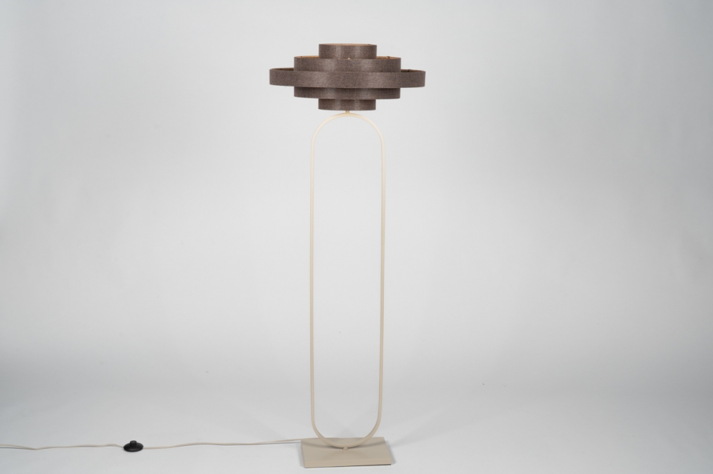 Elegant, modern, tijdloos en helemaal naar wens: deze vloerlamp bestaat uit een elegante, beige lampvoet en een stoffen, bruine kap in bijzondere vormgeving. Samen vormen ze sfeer in je interieur, met een rustige en tijdloze uitstraling.Lampvoet