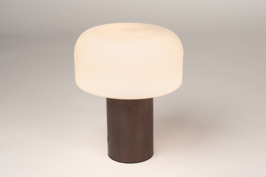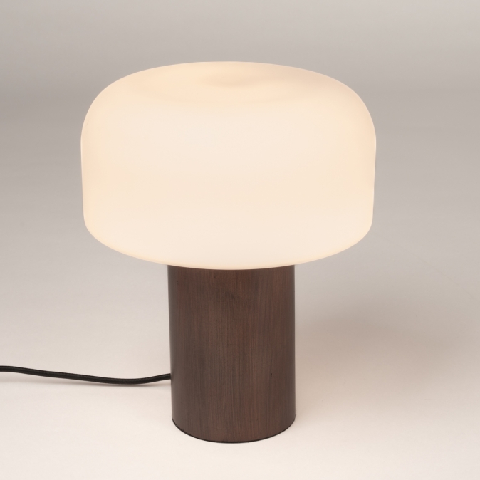 Deze elegante schemerlamp heeft een houten, cilindervormige voet en een ronde kap in melkglas. Deze tafellamp voelt zich zowat overal thuis: als accessoire op een wandkast, als sfeermaker in de hal of als compagnon op het nachtkastje. Of plaats de lamp op een lage salontafel naast een luie stoel voor aangenaam indirect licht. De tafellamp is 22 centimeter breed en 28 centimeter hoog. Het snoer is voorzien van een schakelaar.Voordelen van deze lamp;
