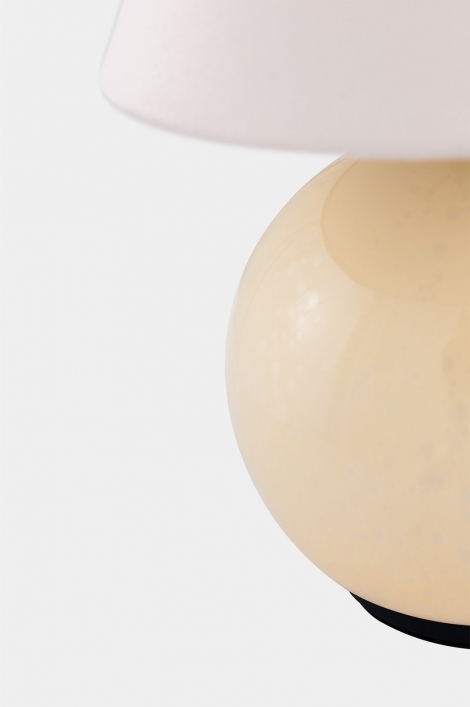 Deze oplaadbare tafellamp neem je gemakkelijk overal mee naartoe dankzij het handige, kleine formaat en het snoerloze ontwerp. Designer Erika Norén liet zich voor deze crème kleurige lamp inspireren door de klassieke tafellampvorm: een eenvoudige lamp met een bolvormige voet en een traditionele lampenkap. De lamp heeft eigentijdse details, zoals een voet van gekleurd glas met onregelmatig geblazen luchtbellen en een bijpassende katoenen kap met een gesloten bovenkant die qua kleur overeenkomt met de voet.