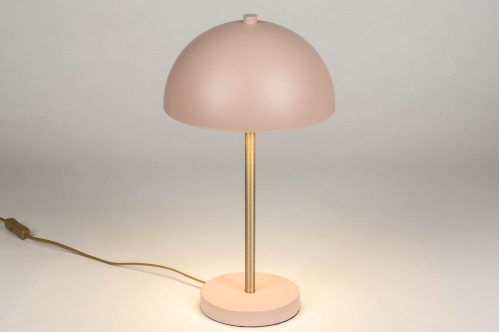 Wat een leukerd, deze poederroze tafellamp. De halve ronde bol heeft een gouden binnenkant en staat op een slank armatuur dat ook goud is. De roze kleur matcht mooi met het goud, dat precies de goede kleur is: Niet te geel en niet te glanzend. Het wordt ook wel messing genoemd en is horizontaal geschuurd. Het licht komt onder de kap vandaan en schijnt daardoor prachtig op uw tafel, raamkozijn of nachtkastje. Door de subtiele ronde voet kan deze oudroze tafellamp overal staan.Voordelen poederroze met gouden tafellamp