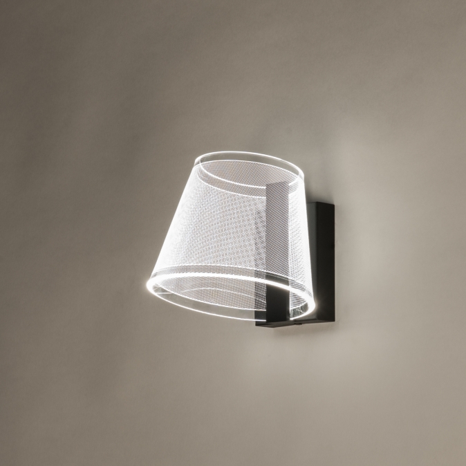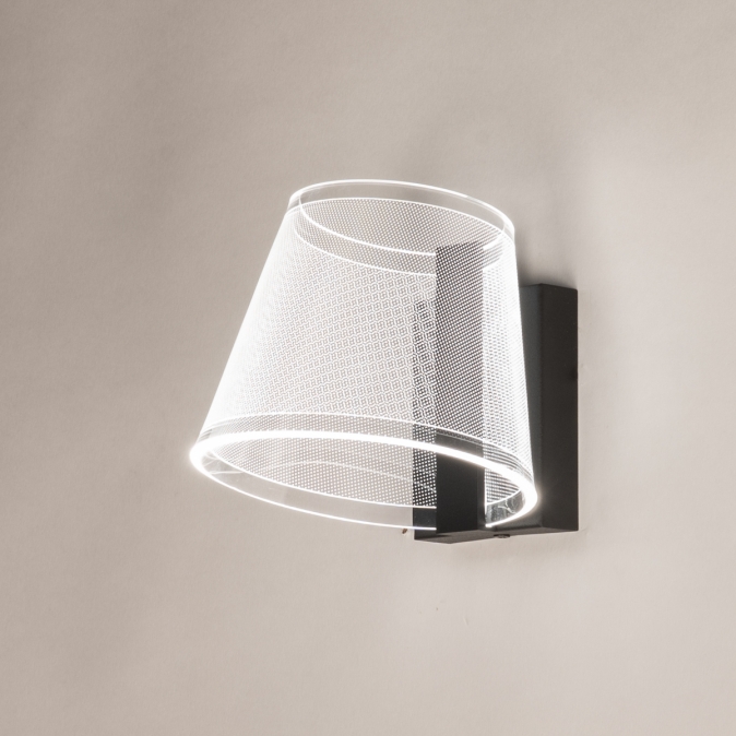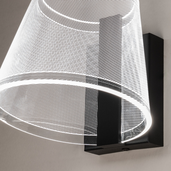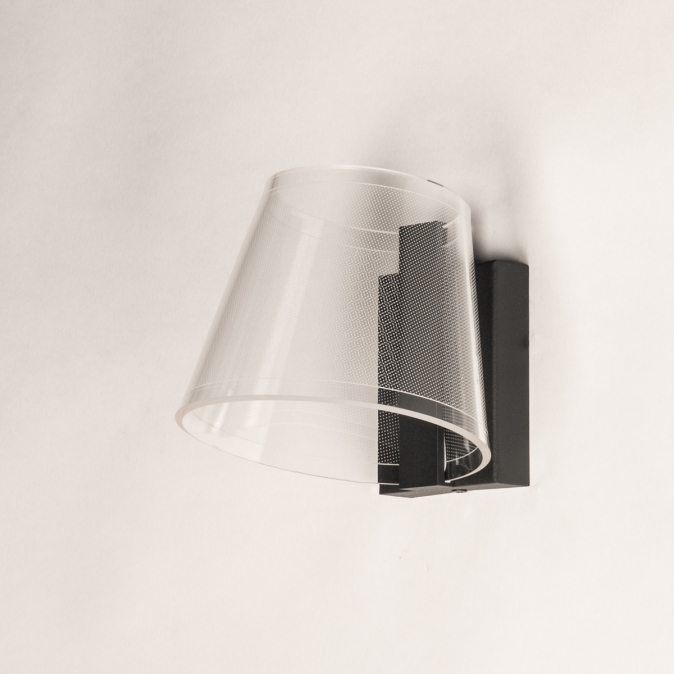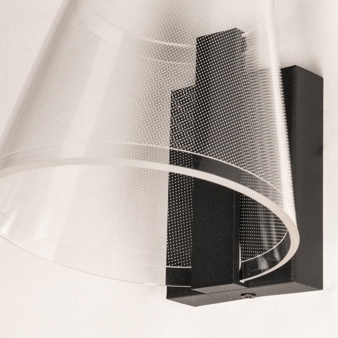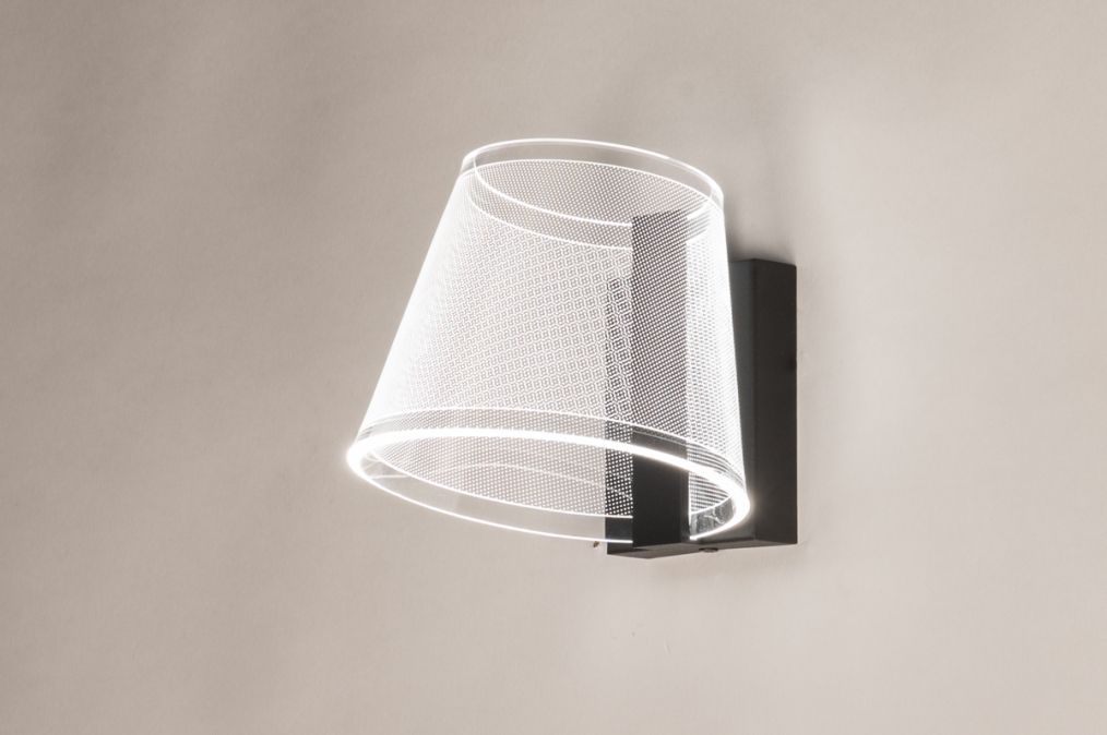 Deze transparante, kleine lampenkap is uitgevoerd in acryl en zit bevestigd aan een zwarte wandplaat. Dit is met recht een hedendaagse interpretatie van de klassieke kap uit textiel! Daarmee is deze wandverlichting de perfecte toevoeging aan de eigentijdse badkamer. Deze wandlamp is zeer geschikt voor gebruik in vochtige ruimtes en doet het goed langs bijvoorbeeld de weerszijden van de spiegel of boven het toilet. Zijn warme licht brengt een intieme sfeer in de kamer en laat hiermee zien dat modern ook zeer sfeervol kan zijn!Voordelen van deze wandlamp