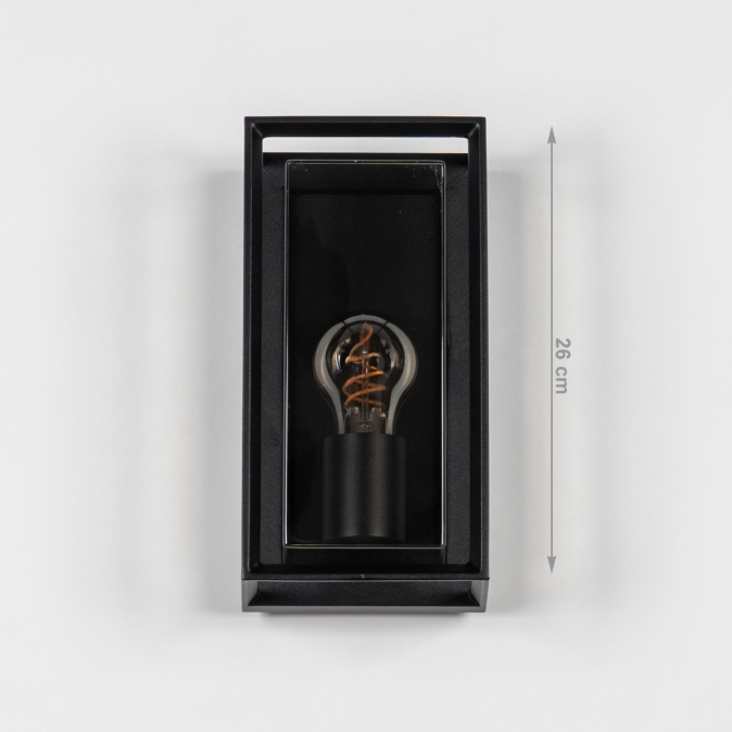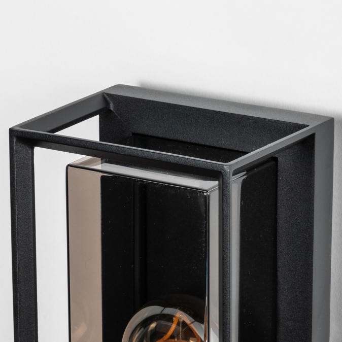 Een klassieker in de categorie buitenlampen! Deze zwarte buitenlamp is de moderne versie van een klassieke buitenlantaarn. Het strakke armatuur bestaat uit een open, metalen armatuur in een mat zwarte kleur. In het open gedeelte zit de lichtbron. Deze wordt goed beschermd door de kunststof kap; deze kap is doorzichtig en heeft een rookglas effect. Vanwege het kunststof is de lamp minder kwetsbaar voor beschadiging en of vernieling. Door het open structuur effect is de lichtopbrengst optimaal. Zo heeft u echt een blikvanger naast de voordeur of in uw tuin.Voordelen zwarte wandlamp voor buiten